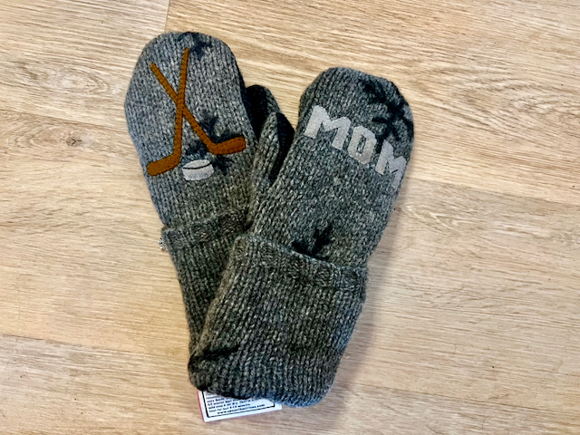 Are you a hockey mom? Then you need warm mittens and this pair of 100% wool mittens will do the trick! The sweater had large snowflakes embroidered all over it so they are scattered across these mitts. They are lined with high quality winter fleece, like all of our mittens.